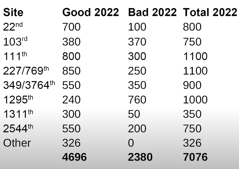 В хорошем состоянии танков у вас было 4796. В плохом, то есть без башен или таких как Т54 еще 2380. Итого чуть больше 7000.