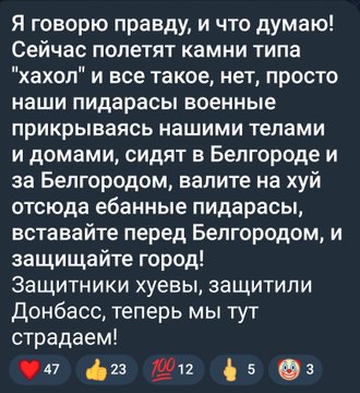 ---------- Мыльте свои крепостные овечьи жопы, скот тупой. Император Хуйло обозначил курс. Чутко прислушивайтесь к соседям и начинайте строчить доносы. «Федеральной службе безопасности следует жестко пресекать попытки посеять в России смуту, нейтрализовать деятельность западных разведок, а также найти и наказать предателей, чтобы защитить Россию от внутренних и внешних угроз. Такие задачи путин поставил перед ФСБ, выступая во вторник на коллегии ведомства… ФСБ следует заняться российской экономикой — банковской и финансовой системой, а также компаниями, которые осваивают новые рынки. Ваша поддержка экономике страны, нашему развитию крайне важна». Как говорится, вот тебе бабушка и Рабиндарант Тагор! На 25-м году правления стабильность дала трещину и теперь он требует искоренять «смуту», которой вроде бы и не было никогда. Ведь если за тебя, придурка, проголосовало 88%, а остальные, по идее – болели, воевали или были заняты какими-то другими делами, например за границей, то кто же эту смуту тебе варит? Ты уже либо 88%, либо что-то из двух одно. |